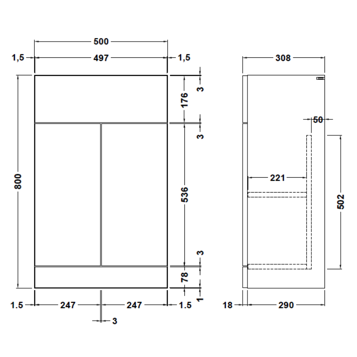 | Furniture Width | 500mm |