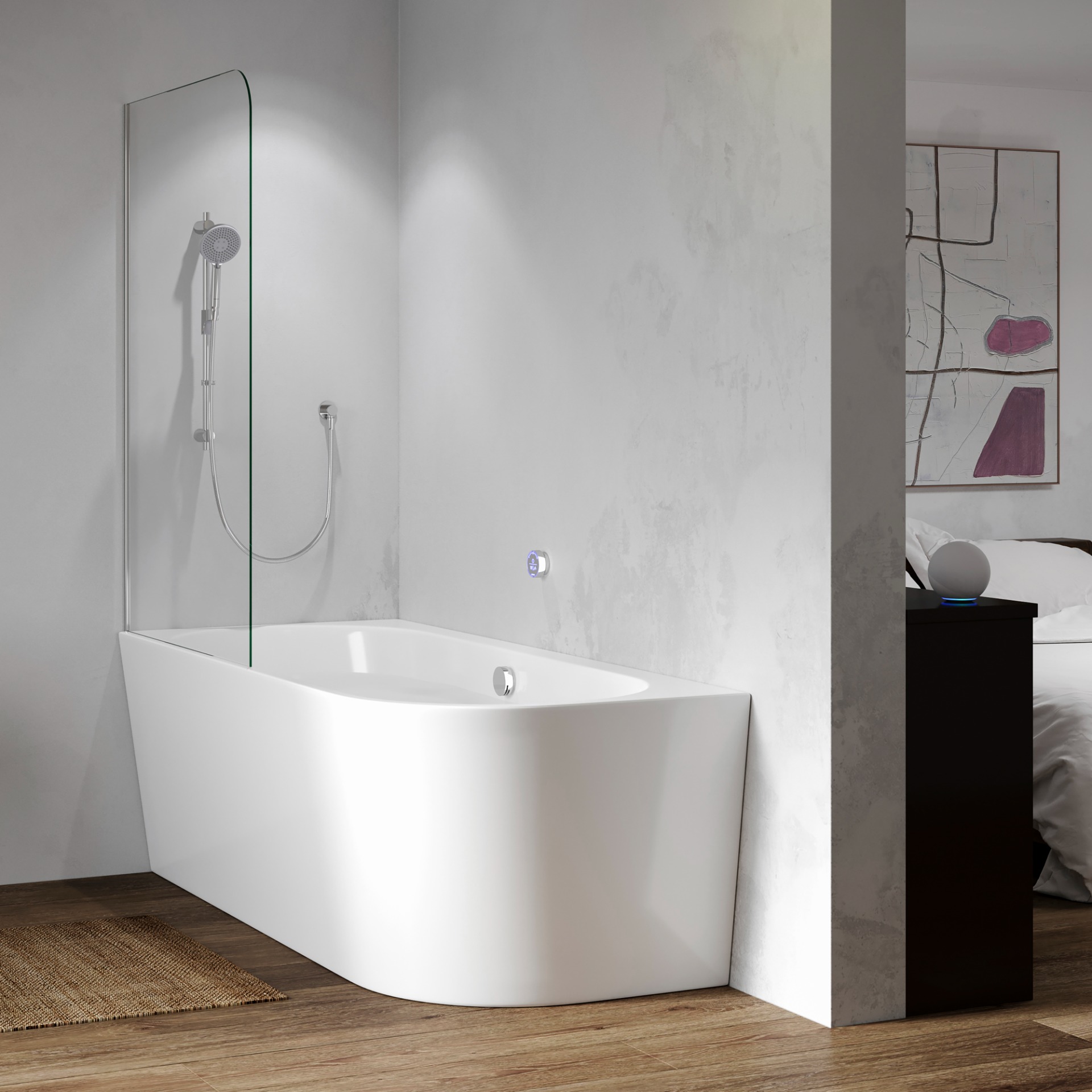 Showering and bathing become part of the connected home with the stylish Smart Glo dual shower and bath fill in a brilliant polished chrome finish with built-in plumbing. Either at a fixed height position or hand held, you can enjoy the convenience of a fully pre-set, temperature ready and timed shower, remotely activated to deliver the perfect experience everytime. Alternatively, you can select the bath fill function for a luxurious bath at exactly the precise temperature and depth required making it perfect for all the family. The intelligent Aqualisa SmartValve, wired behind the wall, ensures consistently accurate and safe digital water management for both the shower and bath, all wifi enabled via mobile app or voice-activated with Alexa or Google Home. Suitable only for domestic high pressure or combi systems.