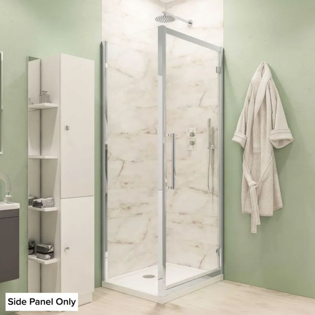 The Corniche Hinge Door Side Panel 2000 x 1000mm – Chrome combines quality, strength, and timeless style. Made with 8mm tempered safety glass, it ensures lasting durability and safety. The easy-clean coating keeps maintenance simple, while fully concealed fixings create a sleek, seamless finish. Suitable for power showers, this panel delivers performance and elegance. Pair with a pivot door to create a complete, luxurious shower enclosure backed by a 10-year manufacturer’s guarantee.