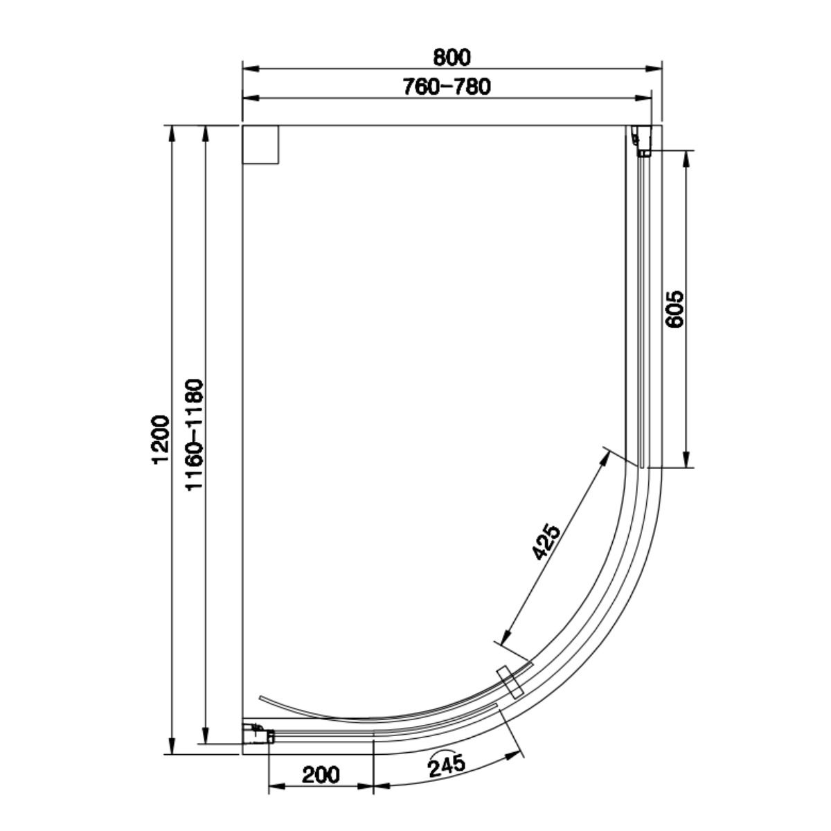 Vantage 2000 Easy Clean Offset Quadrant 1200x800mm - Black Glass