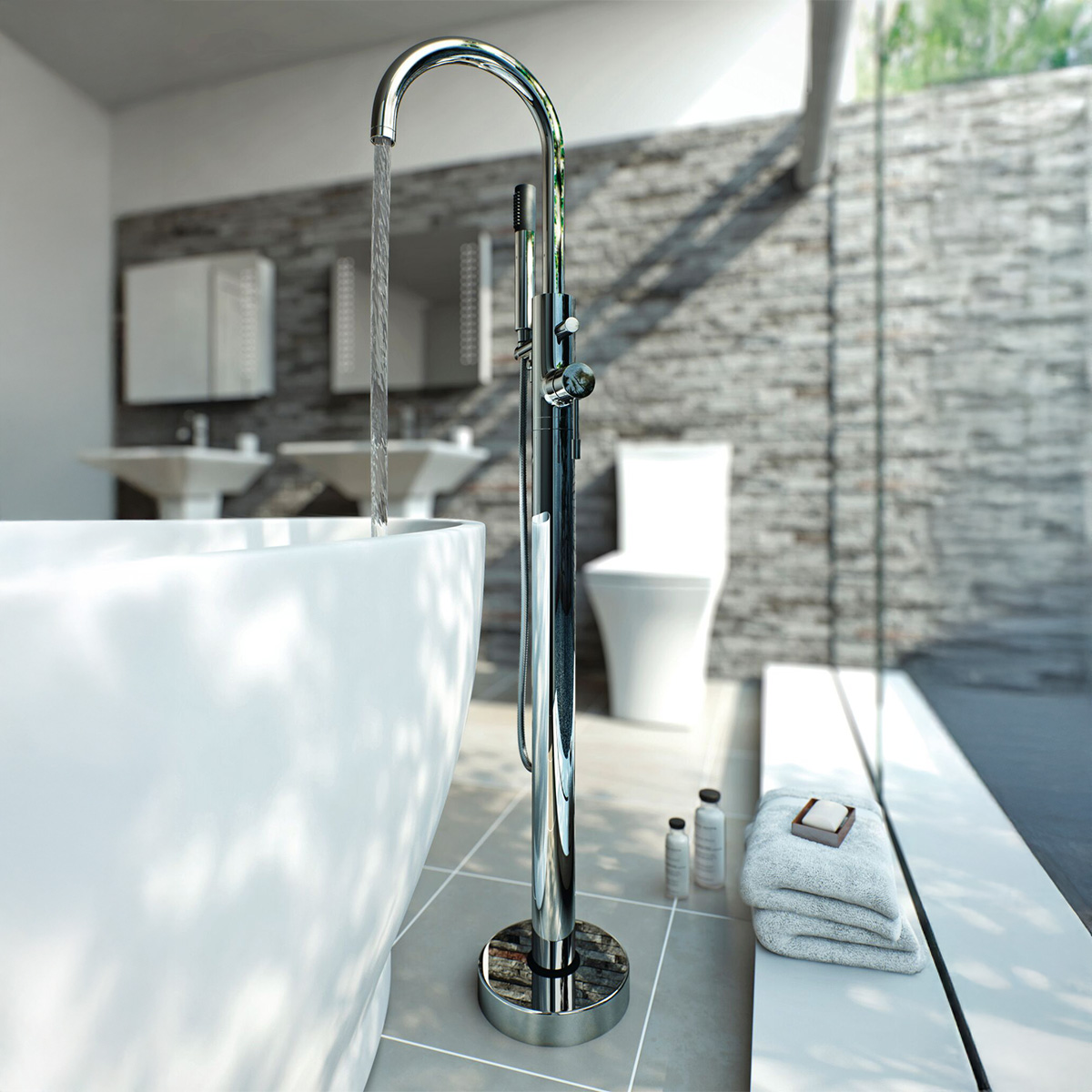The Eliseo Ricci L-Series floor standing bath shower mixer delivers modern luxury with a sleek chrome finish. Designed for freestanding baths, it includes a hand shower and flexible hose for added functionality. Crafted from high-quality brass, it features a smooth single-lever operation and durable ceramic disc cartridge. Its tall, elegant design makes it a standout feature in contemporary bathrooms. Please note: bath and waste are not included.