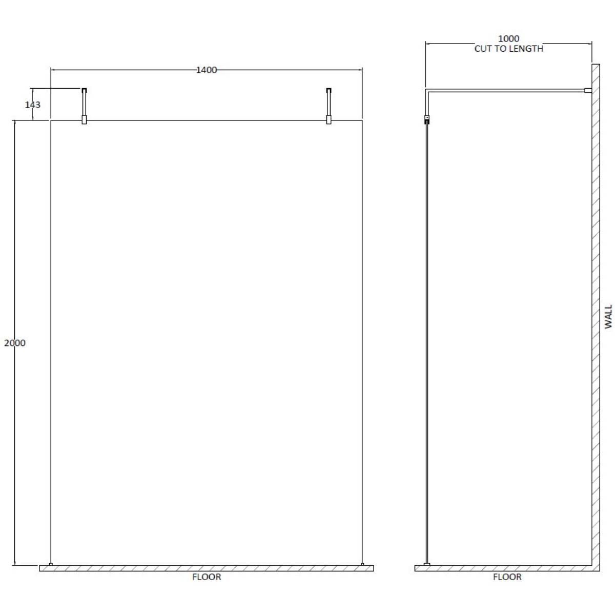 Hudson Reed 1400mm Wetroom Screen With Arms and Feet - Chrome GPAF14