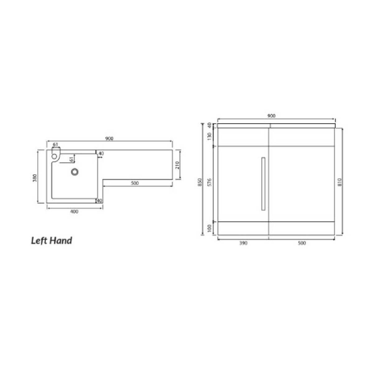 Lili 900mm Floorstanding Vanity Unit, Basin & WC Run Left Hand - Graphite Grey (13325) Grey MDF
