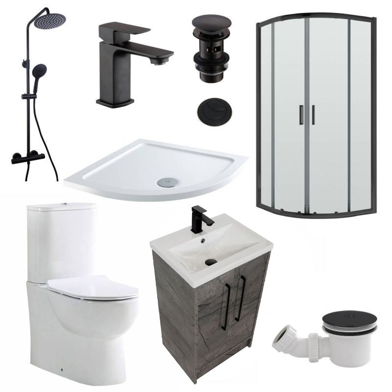 Noir Black Quadrant & Vanity En-suite Pack Black Glass