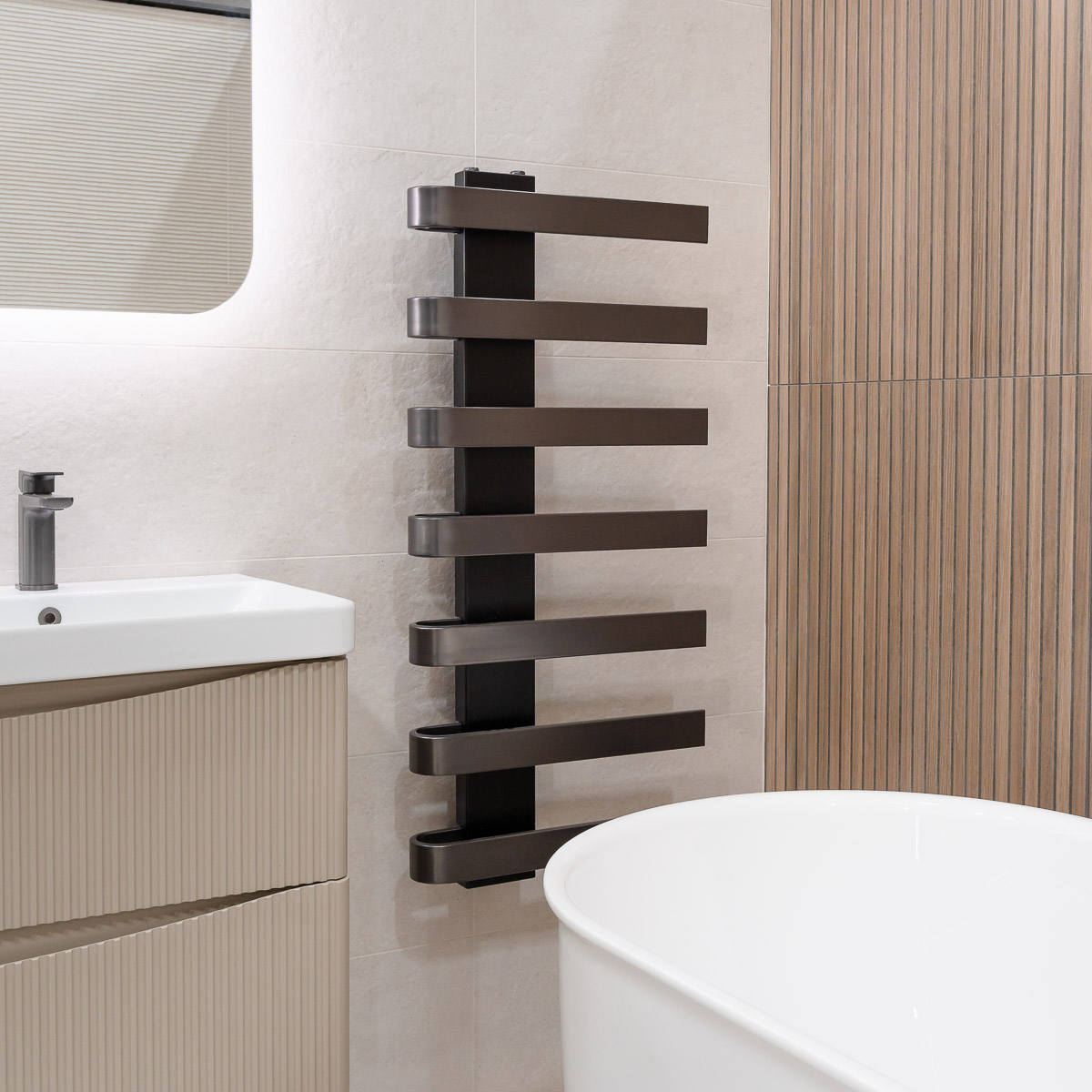 Panaro 1100 x 500mm Designer Heated Towel Rail - Brushed Gun Metal
