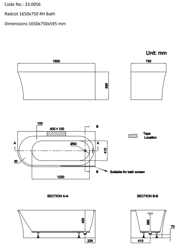 | Bath Length | 1650mm |