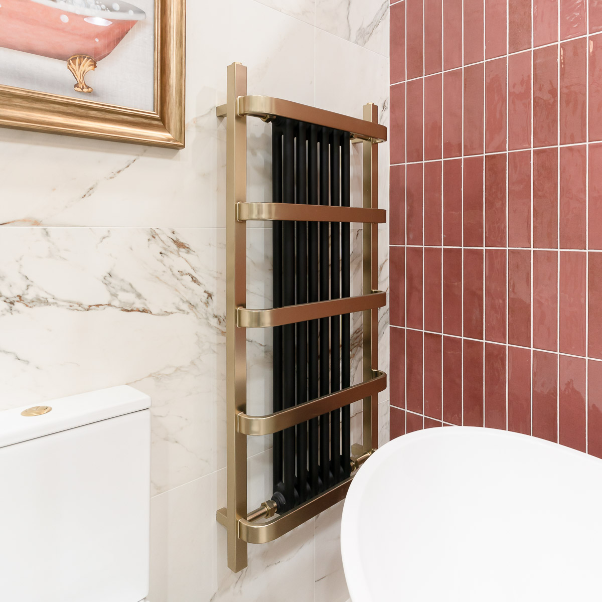 Regina 550 x 1200mm Brushed Brass / Black Designer Towel Radiator Steel