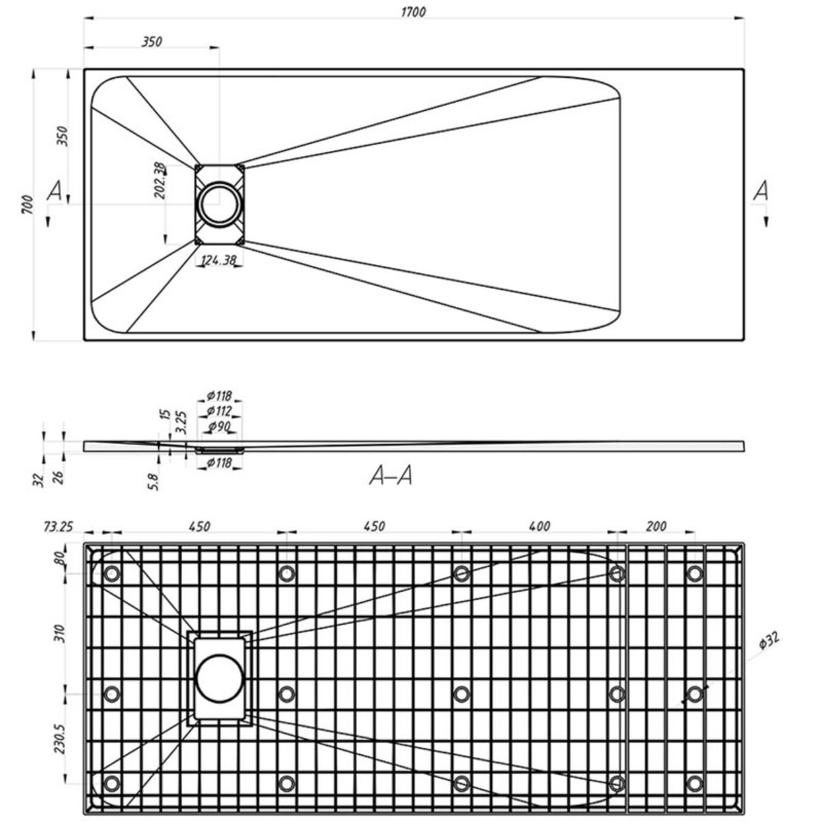 Veloce Uno Rect Shower Tray 700 x 1700mm - Grey