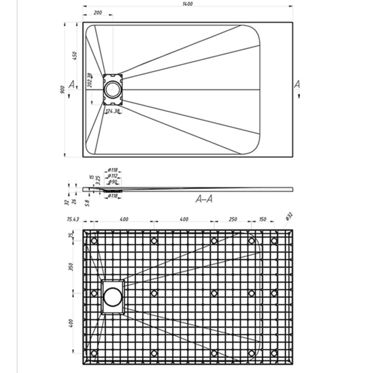 Veloce Uno Rectangle Shower Tray 900 x 1400mm - Grey Polymarble