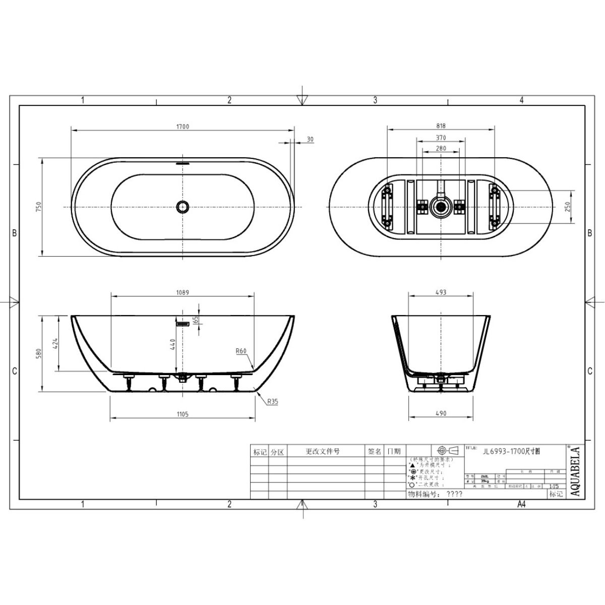 - Spacious 1700 x 750mm freestanding design