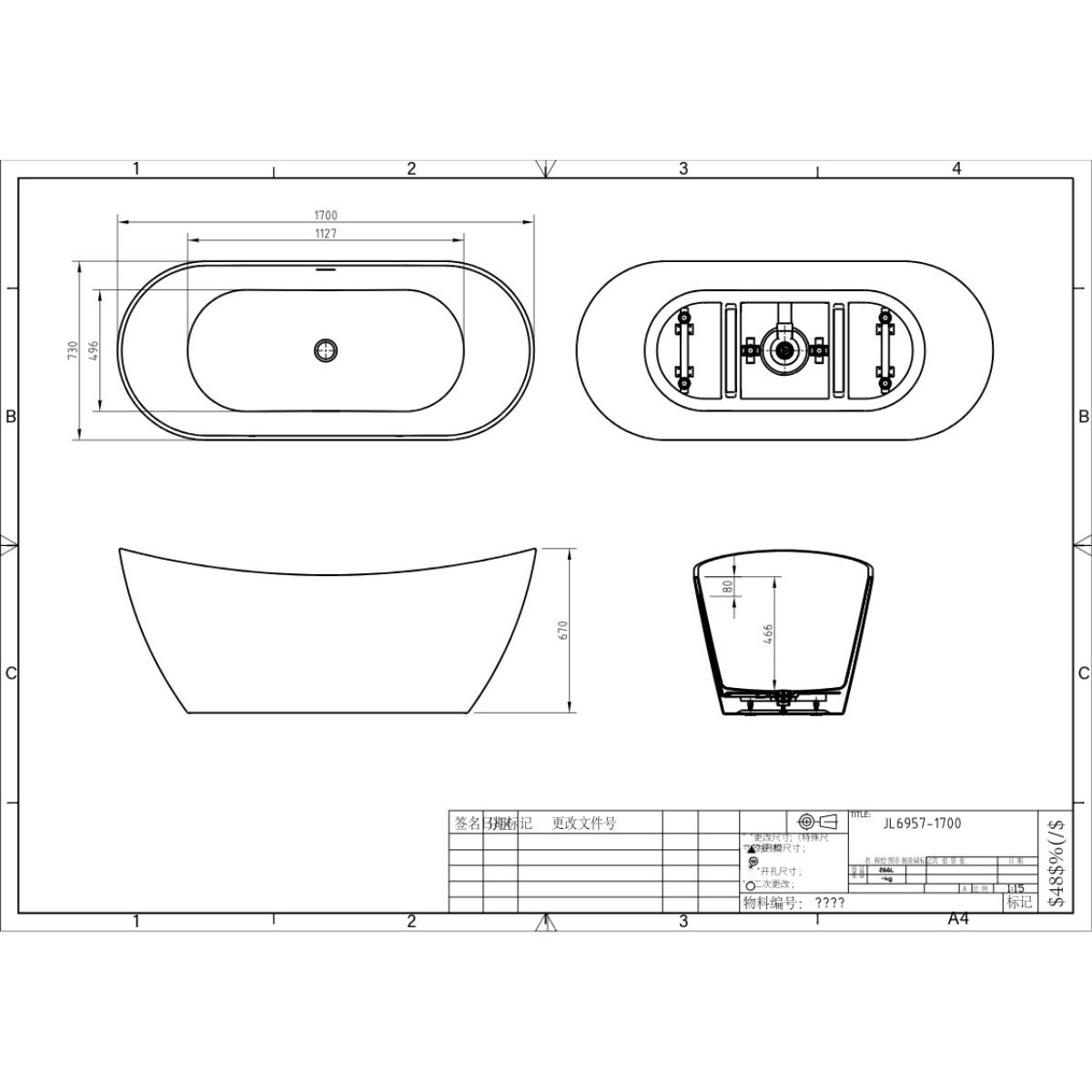 Viktor Benson Orta 1700 x 730mm Freestanding Double Ended Bath (Slim Overflow White Waste)