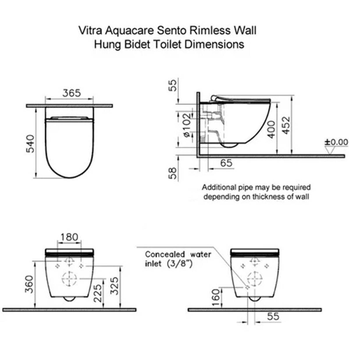 Vitra Sento Aquacare Rimex Wall Hung Toilet Pan Set With Bidet Function