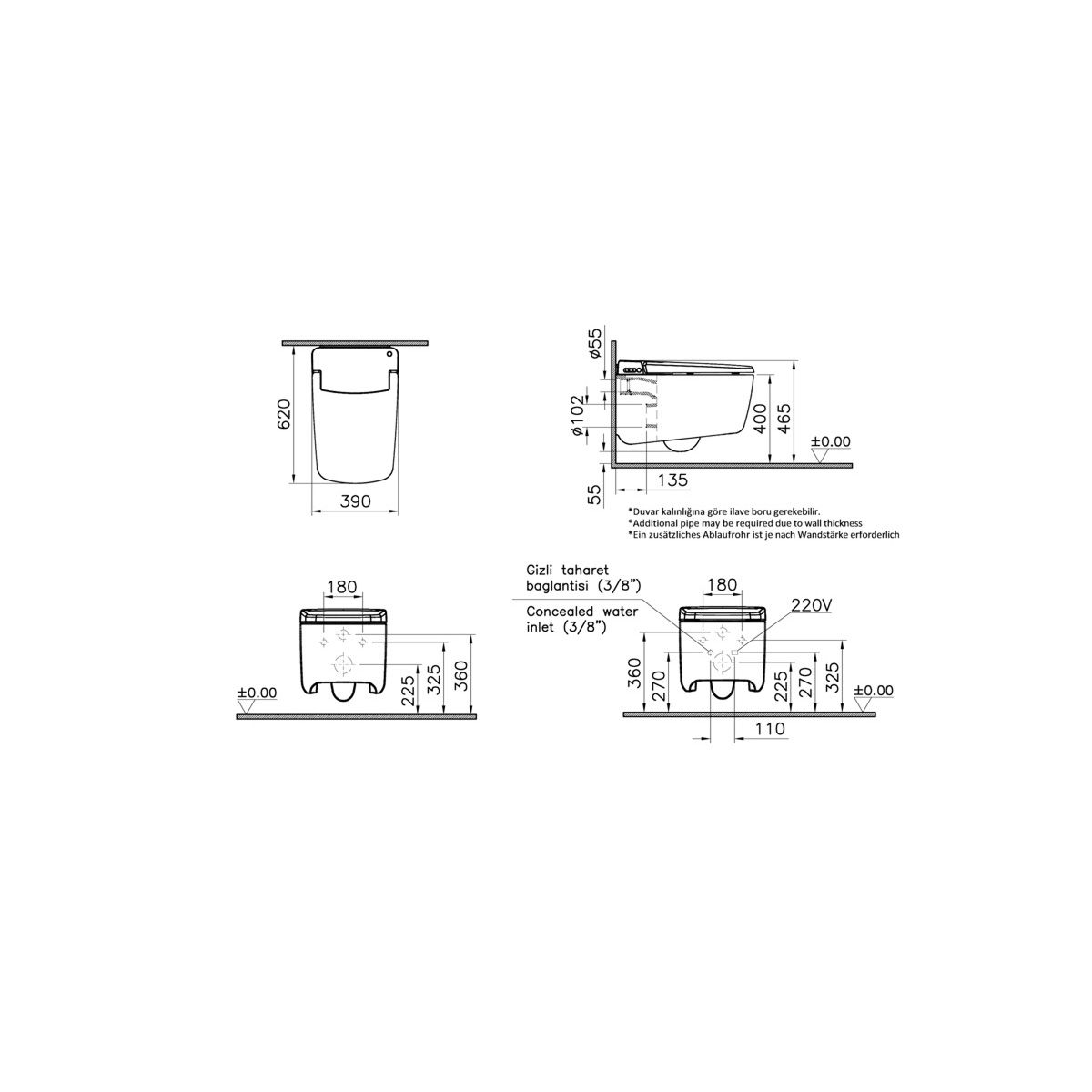 Vitra V-Care Prime Smart Wall-Hung Toilet and Seat, 112cm Cistern and Chrome Flush Plate